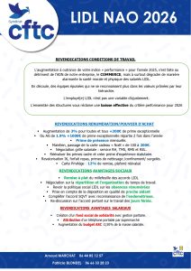 Accueil Non classé RDV NAO 2026 retour 1ere journée 07/01/2026 By christophelefevre / 08/01/2026 En savoir + Non classé NAO 2026 By christophelefevre / 08/01/2026 En savoir + Non classé Sortie de l’intersyndicale By christophelefevre / 07/11/2025 Courrier intersyndicale En savoir + Non classé 100€ de pouvoir d’achat en + By christophelefevre / 07/11/2025 carte cadeau LIDL En savoir + Non classé Mai 2025 Grève illimitée By christophelefevre / 12/05/2025 En savoir + Non classé 01 MAI 2025 By christophelefevre / 28/04/2025 En savoir + Non classé 6000 votes: MERCI By christophelefevre / 17/03/2025 En savoir + Non classé 10 MARS 2025 Mobilisation Siége By christophelefevre / 17/03/2025 En savoir + Non classé STOP By christophelefevre / 08/03/2025 En savoir + Non classé 08 MARS 2025 By christophelefevre / 08/03/2025 En savoir + RDV NAO 2026 retour 1ere journée 07/01/2026 NAO 2026 Sortie de l’intersyndicale 100€ de pouvoir d’achat en + Mai 2025 Grève illimitée 01 MAI 2025 6000 votes: MERCI 10 MARS 2025 Mobilisation Siége STOP 08 MARS 2025 ACTIONS INTERSYNDICALE VOTRE AVIS Courrier direction LIDL ON LACHE RIEN 14/02/2025 SAINT VALENTIN pour les salariés LIDL ECHEC NAO 2025 NAO 2025 dernier RDV TOUS EN GREVE !!!07/02/2025 NAO 2025 Second RDV NAO 2025 NAO 2025 2025 Bonne Année 2025 VOEUX Section LIDL NOEL 2024 NOEL 2024 Noel 2024 CARTE CADEAU NOEL TICKET RESTO 13eme mois 2024 HALLOWEEN Load More
